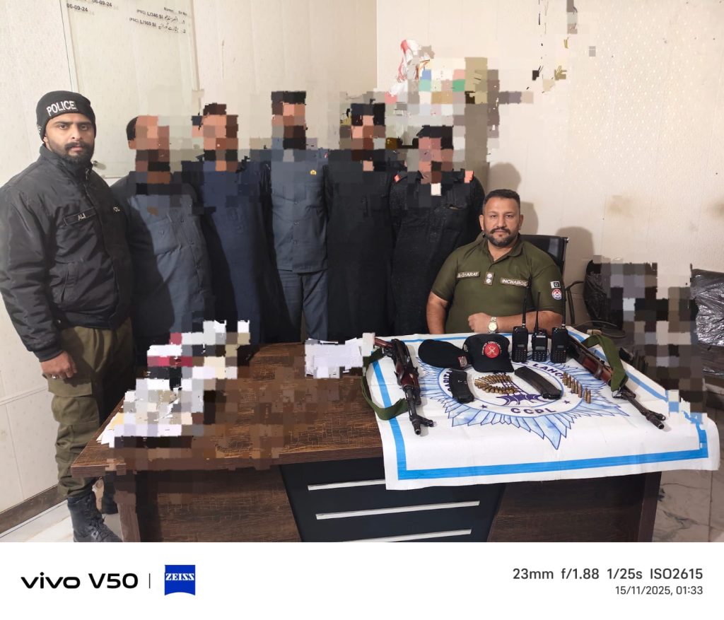 انچارج چوکی اعوان ڈھائے والا بشارت علی کی پولیس ٹیم کے ہمراہ بڑی کاروائی اسلحہ کی نمائش کرنے والے 05 ملزم اسلحہ اور گاڑی سمیت گرفتار،ملزمان میں ظفر خاں، حسن، امیر عبداللہ، محمد بخش وغیرہ شامل،ترجمان پولیس .ملزمان پابندی کے باوجود گاڑی پر سر عام اسلحہ لیکر گھوم رہے تھے.دوران سنیپ چیکنگ گاڑی کو مشکوک جانتے ہوئے رکنے کا اشارہ کیا نہ رکنے پر پولیس نے تعاقب کر کے ملزمان کو گرفتار کیا، .ملزمان کے قبضہ سے 02 آٹو میٹک رائفلیں، 03 واکی ٹاکی سیٹ، میگزینز اور گولیاں برآمد، مقدمات درج، .ملزمان کے زیر استعمال گاڑی کو بھی پولیس تحویل میں لیا گیا ہے،
